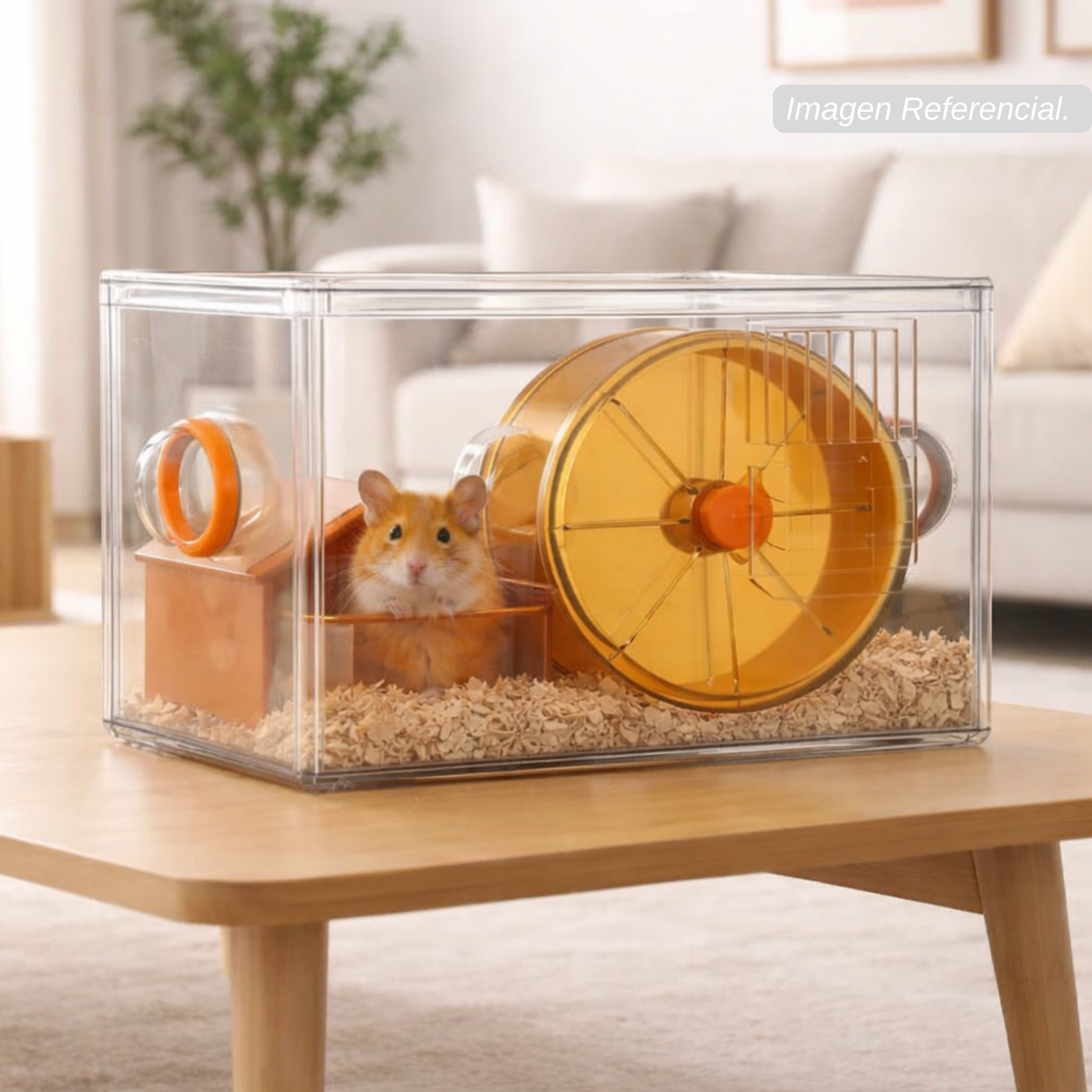 La Casa Acrílica para Hámster es un hábitat moderno, seguro y súper práctico para hámsters y roedores pequeños. Su diseño transparente permite observar a tu mascota en todo momento y mantener su espacio limpio y ordenado. Incluye accesorios integrados como rueda de ejercicio, área de descanso y espacio para alimento, brindándole un entorno más completo, cómodo y entretenido.