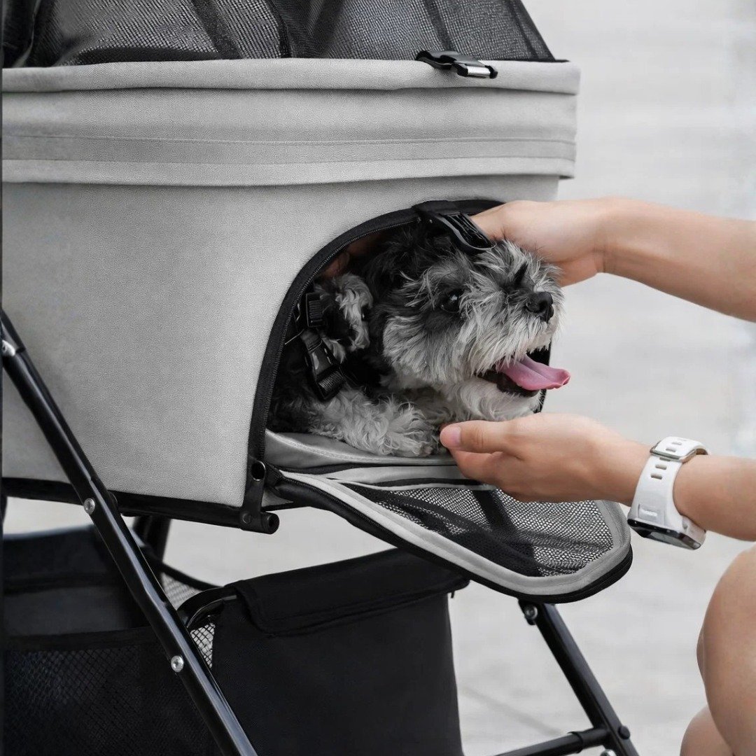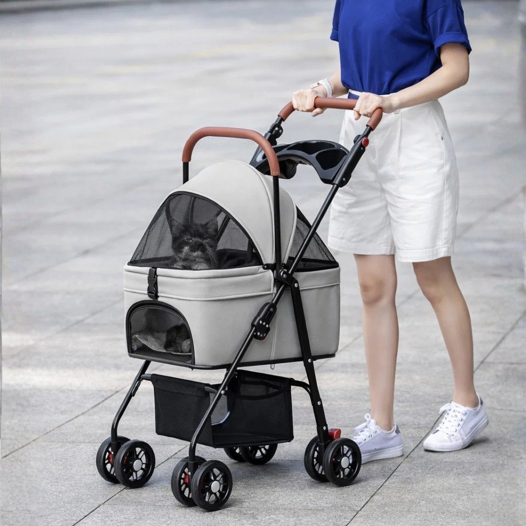 Coche desmontable para mascotas compacto y elegante, ideal para paseos urbanos y viajes. Diseñado para ofrecer máxima comodidad y seguridad, permite transportar a mascotas pequeñas o gatos sin esfuerzo, reduciendo el cansancioen recorridos largos. Su cabina cerrada on malla transpirable garantiza una excelente ventilación y visibilidad, mientras que su estructura estable y ruedas dobles aseguran un desplazamiento suave incluso en superficies irregulares. Incluye canastilla inferior y superior para llevar accesorios o compras, convirtiéndolo en una solución práctica y funcional para el día a día.